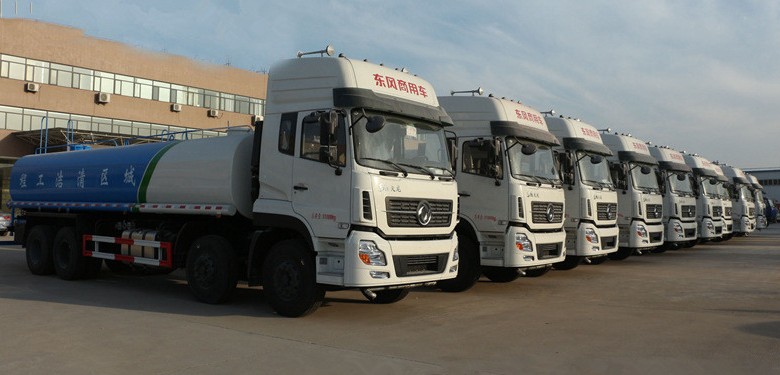 9臺東風天龍前四后八25方灑水車發(fā)往西安