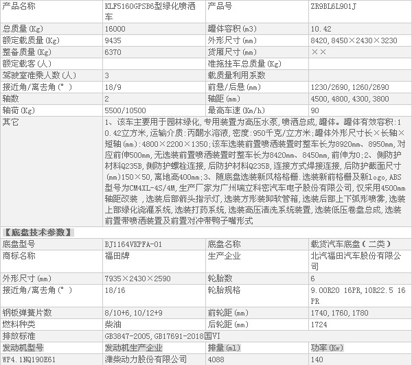 罐體容積:12方,上裝鉚接件,主管道加粗,大小平臺任選!可選灑水車小平臺!罐體采用Q235碳鋼,罐體厚度5mm,前后封頭5MM加厚型,罐體實際容積12立方,產品質量成熟可靠,設計先進合理,比同類灑水泵壓力大、吸程遠、使用壽命長,可泵進泵出。前沖、后灑、側噴,消防栓接口,帶后工作平臺及綠化高炮(可全方位旋轉,可連續調成直沖狀、大雨、小雨、毛毛雨),水位計,兩根等長輸水管,其余標配。30米噴霧機組,柴油發電機組。