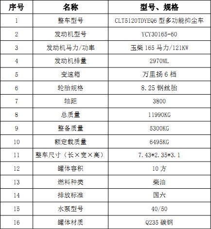 1、整車型號(hào): CLT5120TDYEQ6型多功能抑塵車