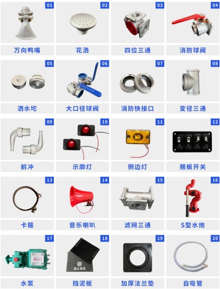 60/90億豐泵,前部三彎對沖,后部灑水砣,定向小鴨嘴側(cè)噴(手動(dòng)),灑水炮(手動(dòng)),自吸,音樂喇叭,尾部一寸對接口,花紋板小平臺,液位計(jì)。